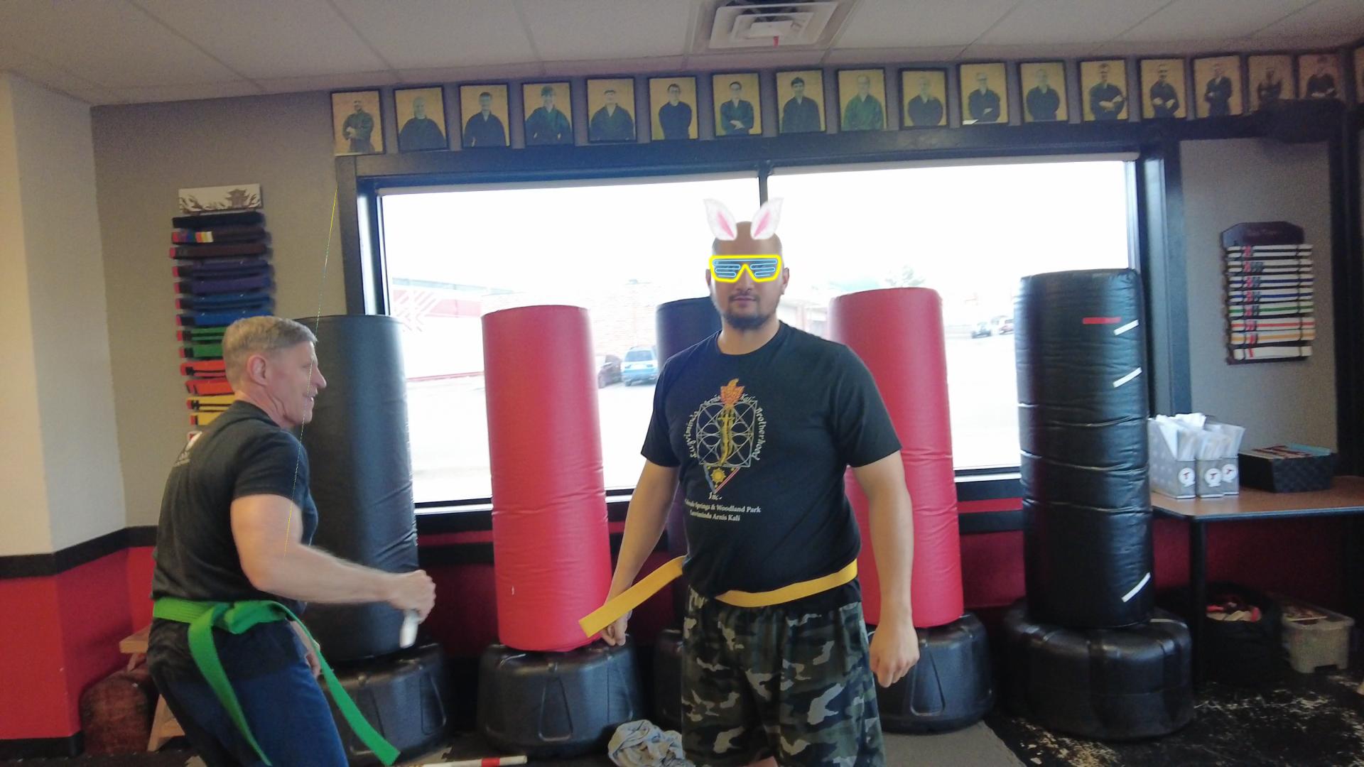 Our program includes sticks, knives, longer blade, poles, bare hand and whatever else we might find laying around. In self-defense you should know how to defend against and use whatever you have. Recognizing that other martial arts are valuable we incorporate other styles enhancing the warrior and the styles in the process.